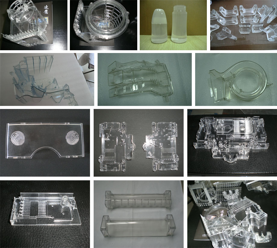 PMMA這種透明樹脂材料也是液體感光聚合物,通過(guò)紫外光逐層固化,形成一層又一層的硬質(zhì)并且表面光滑的三維物體。通過(guò)表面打磨拋光,上油幾乎完全透明,可以和注塑件媲美。